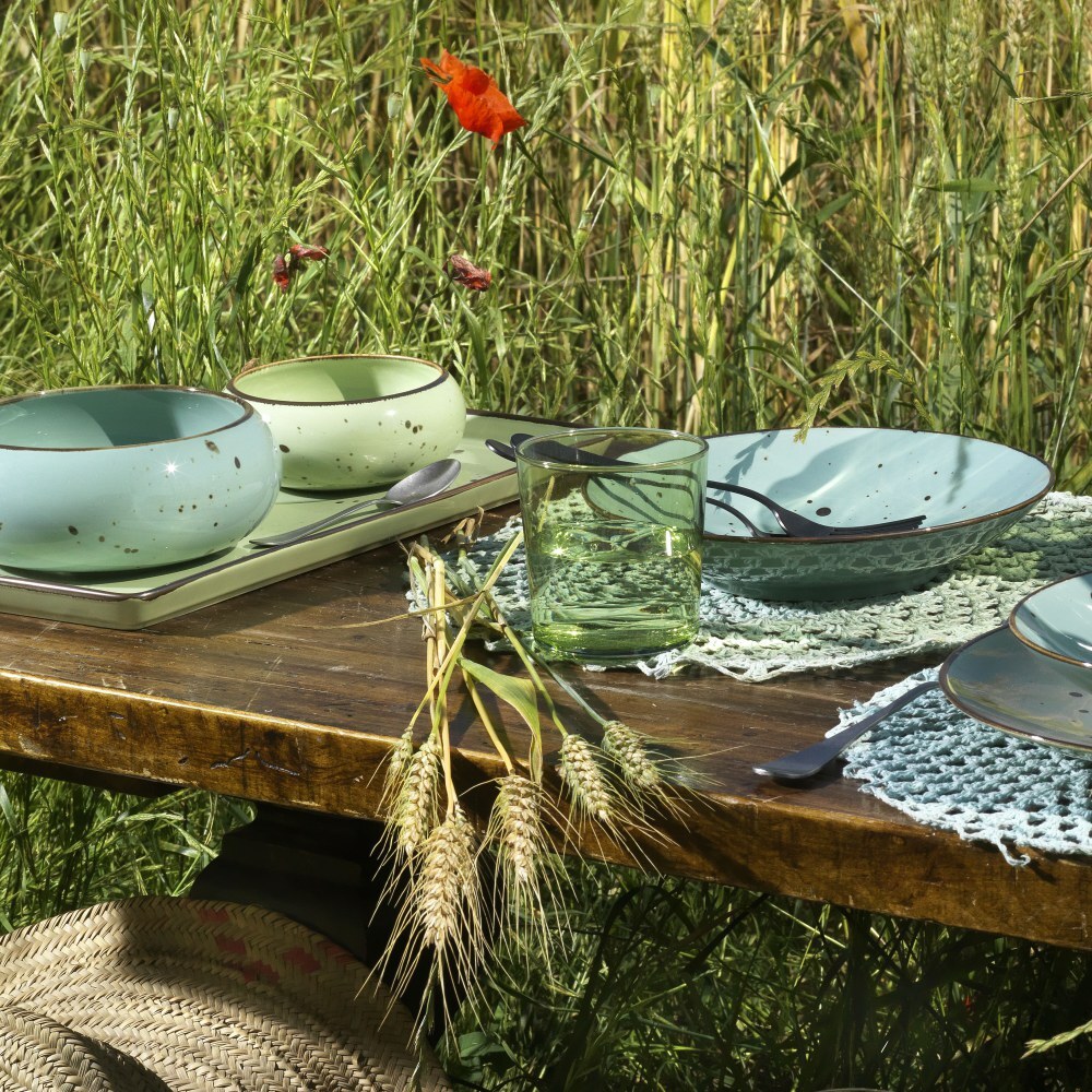 Finitura lucida internamente e ruvida all'esterno, Natural è dirompente, materica, particolare al tatto e alla vista, resistente agli urti e all'uso quotidiano. Le sue sfumature evocano i colori vivi della natura e la sua esperienza d'uso coinvolge tutti i sensi.