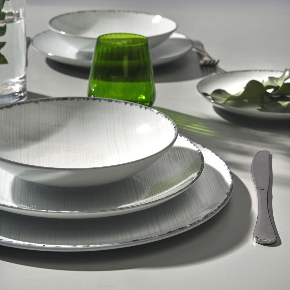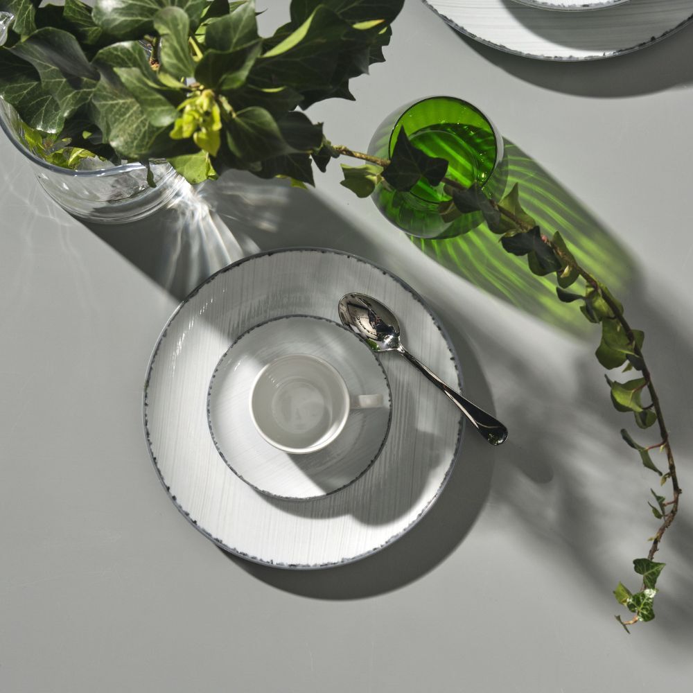 A bold shade, a gritty touch, a striking contrasting border. Introducing the Almond Black porcelain tableware, the perfect compromise between casual elegance and everyday dining, with its modern, minimalist shapes.
