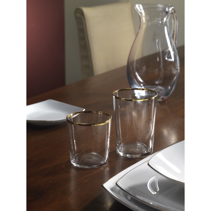 Bicchiere da tavola in vetro con vero filo oro 3mm applicato a mano.