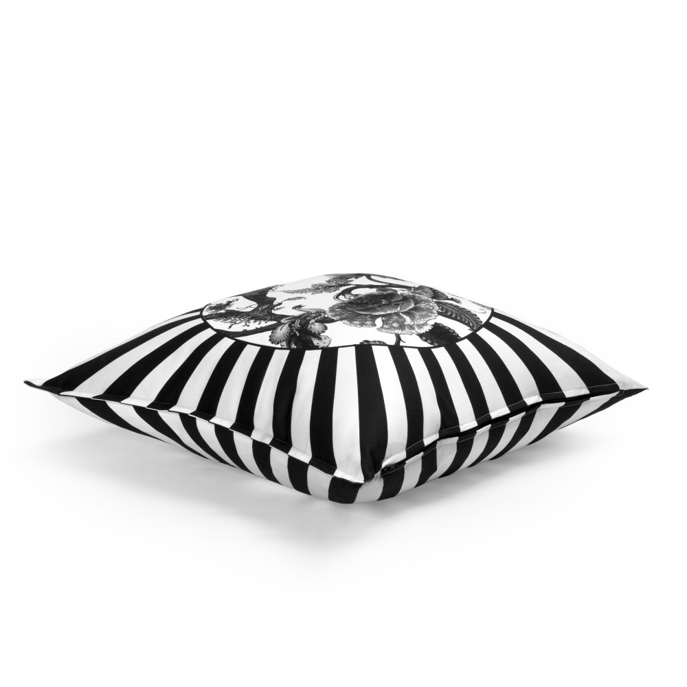 Cuscino in 100% cotone Made in Italy disegnato in esclusiva dallo stylist Simone Guidarelli, ispirato alle sue collezioni di piatti in porcellana.