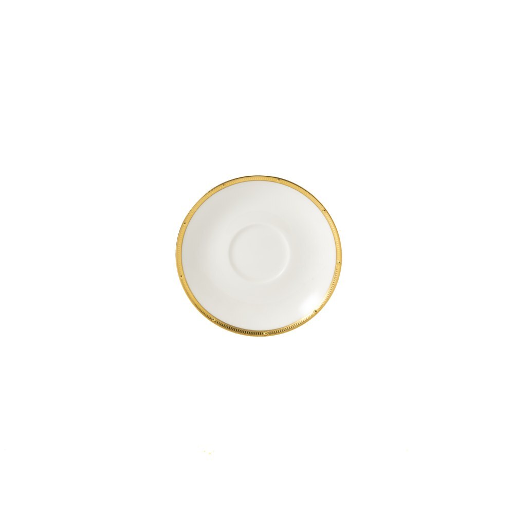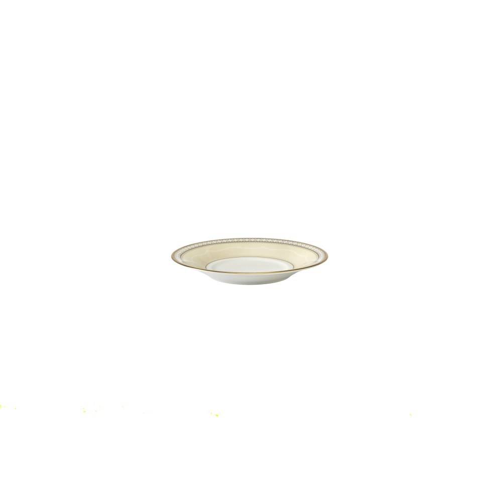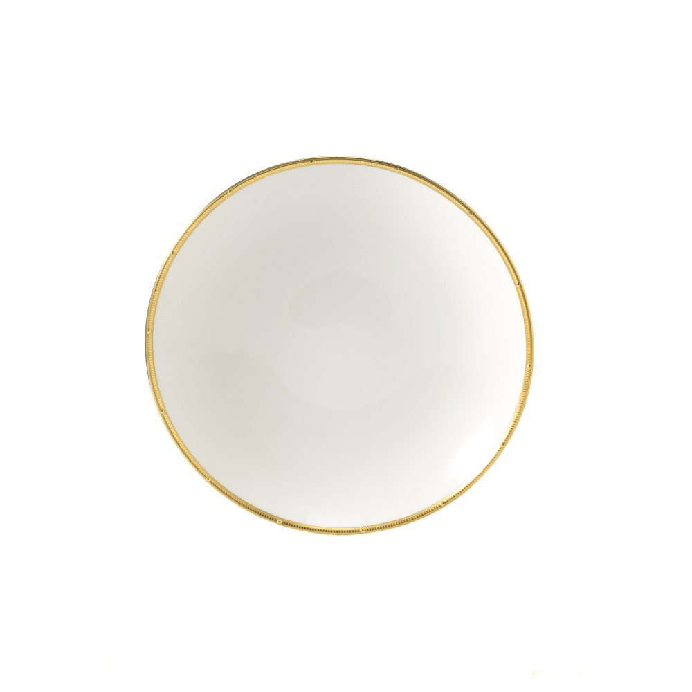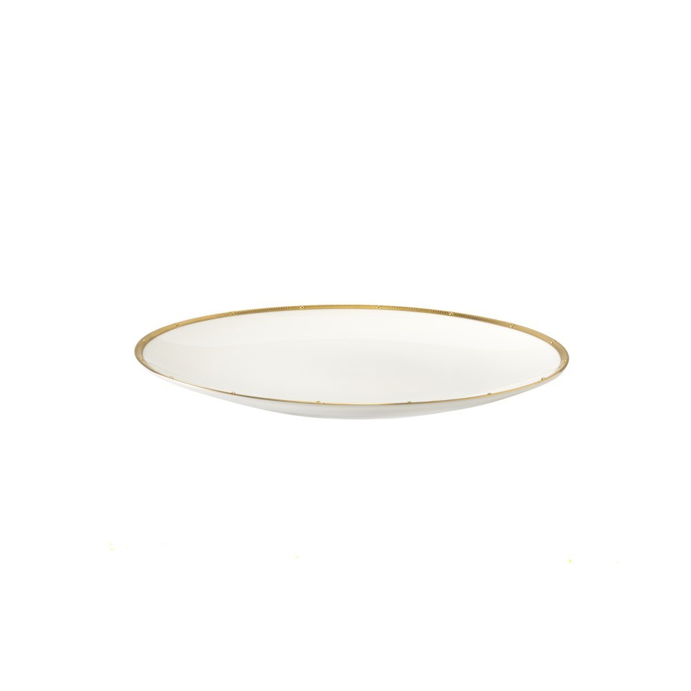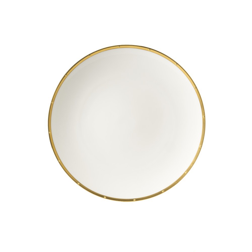 Piatto piano in bone china rifinito con filo oro linea Trefolio Gold Noritake.