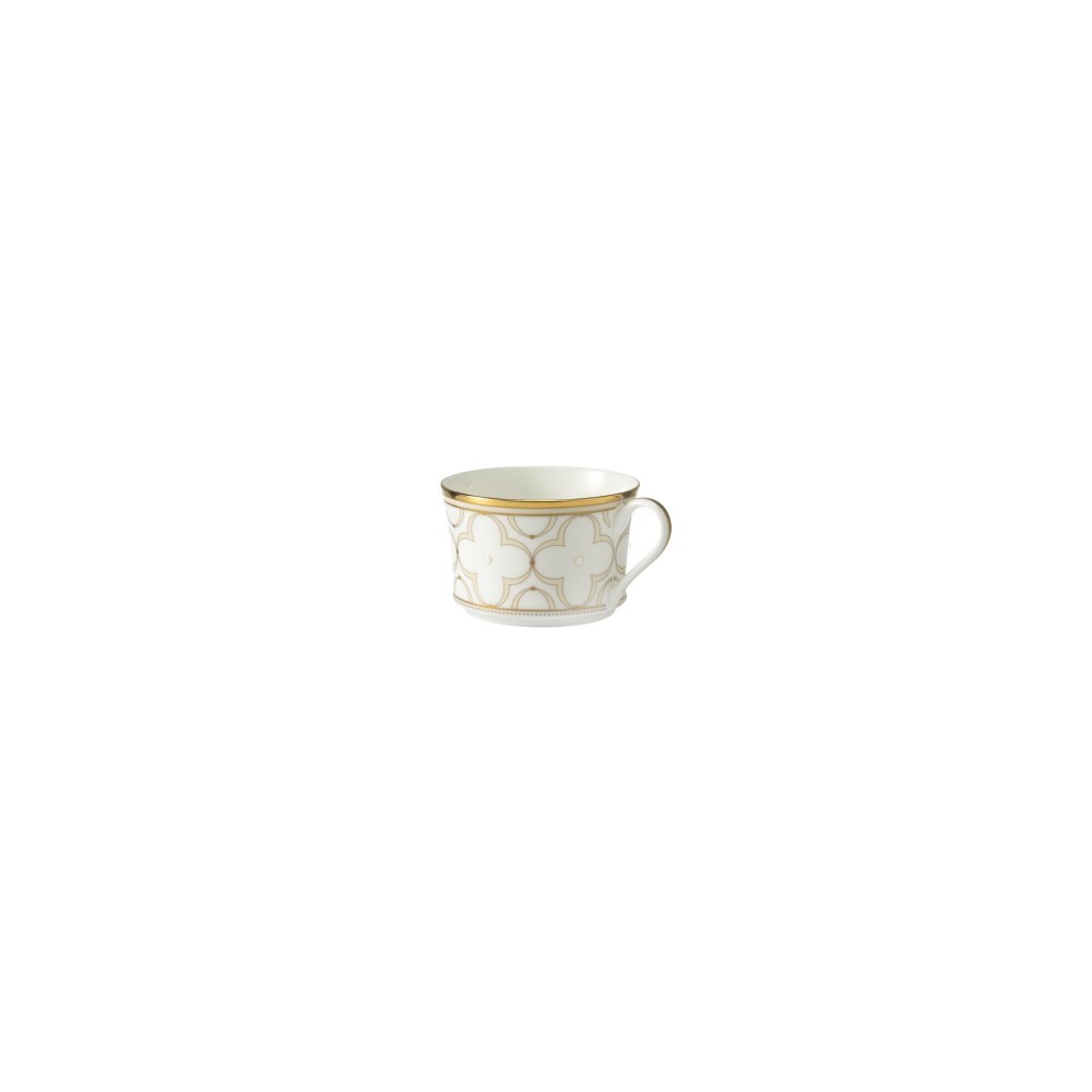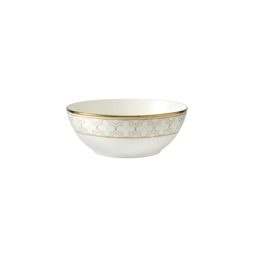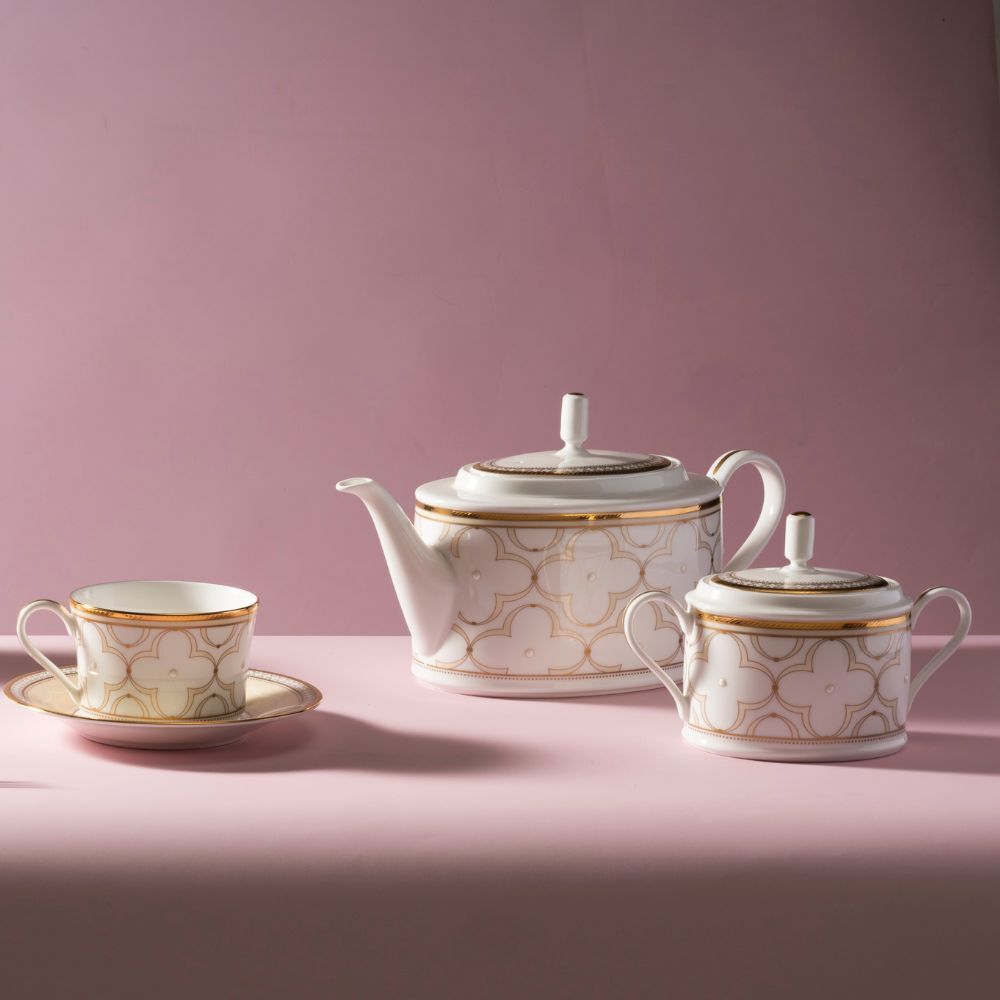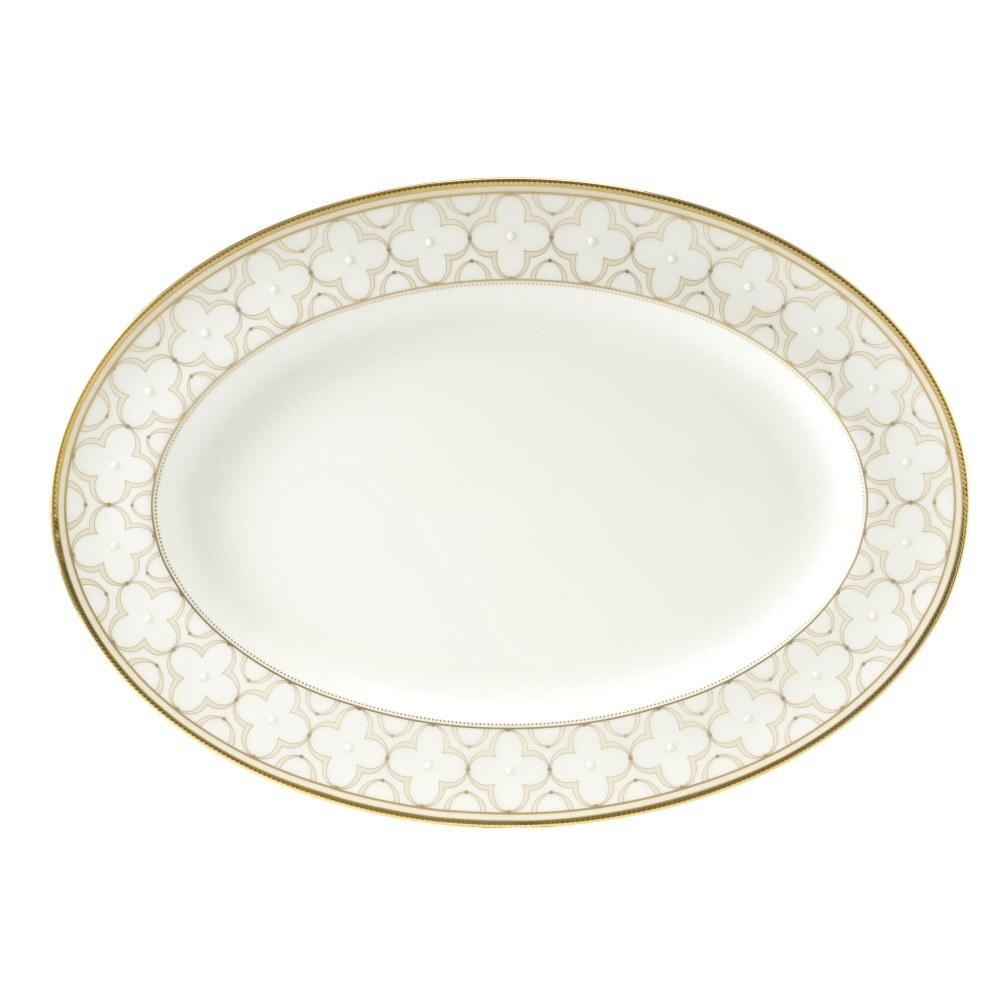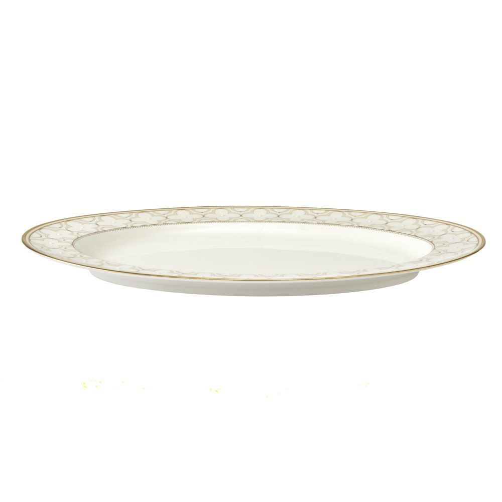 Piatto piano in bone china rifinito con filo oro linea Trefolio Gold Noritake.