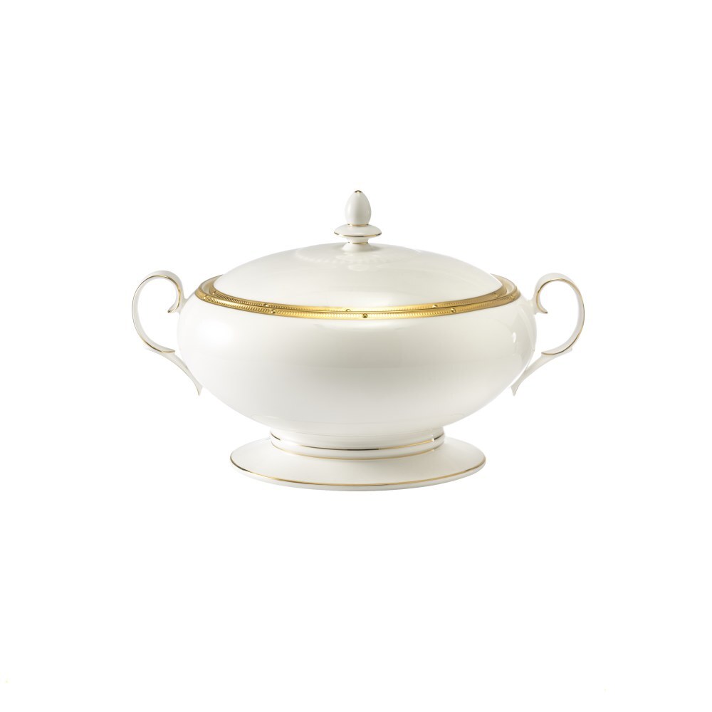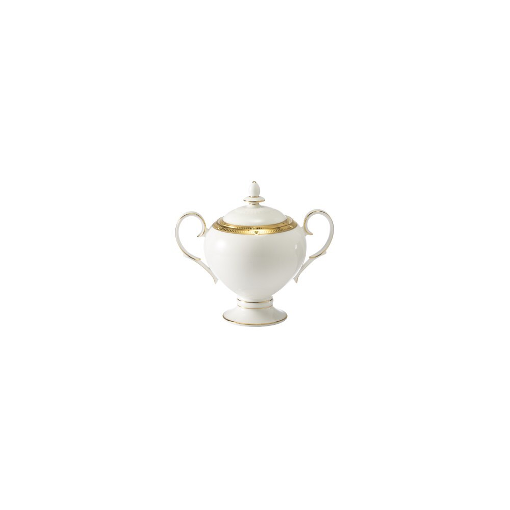 Piattino per tazza caffè in bone china rifinito con filo oro collezione Rochelle Gold Noritake.