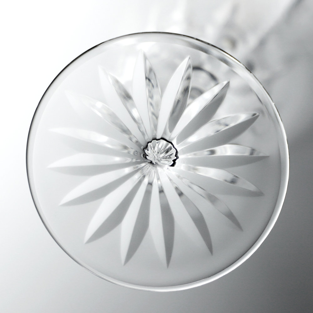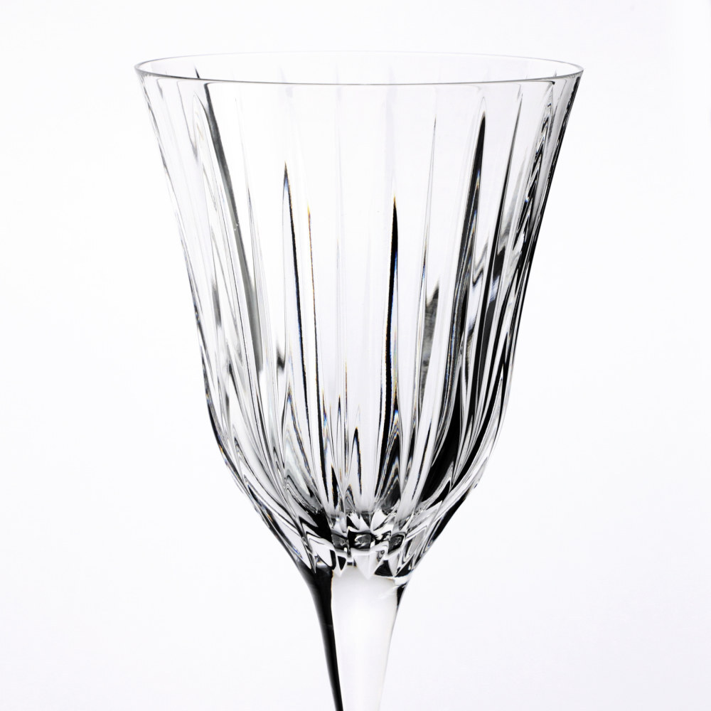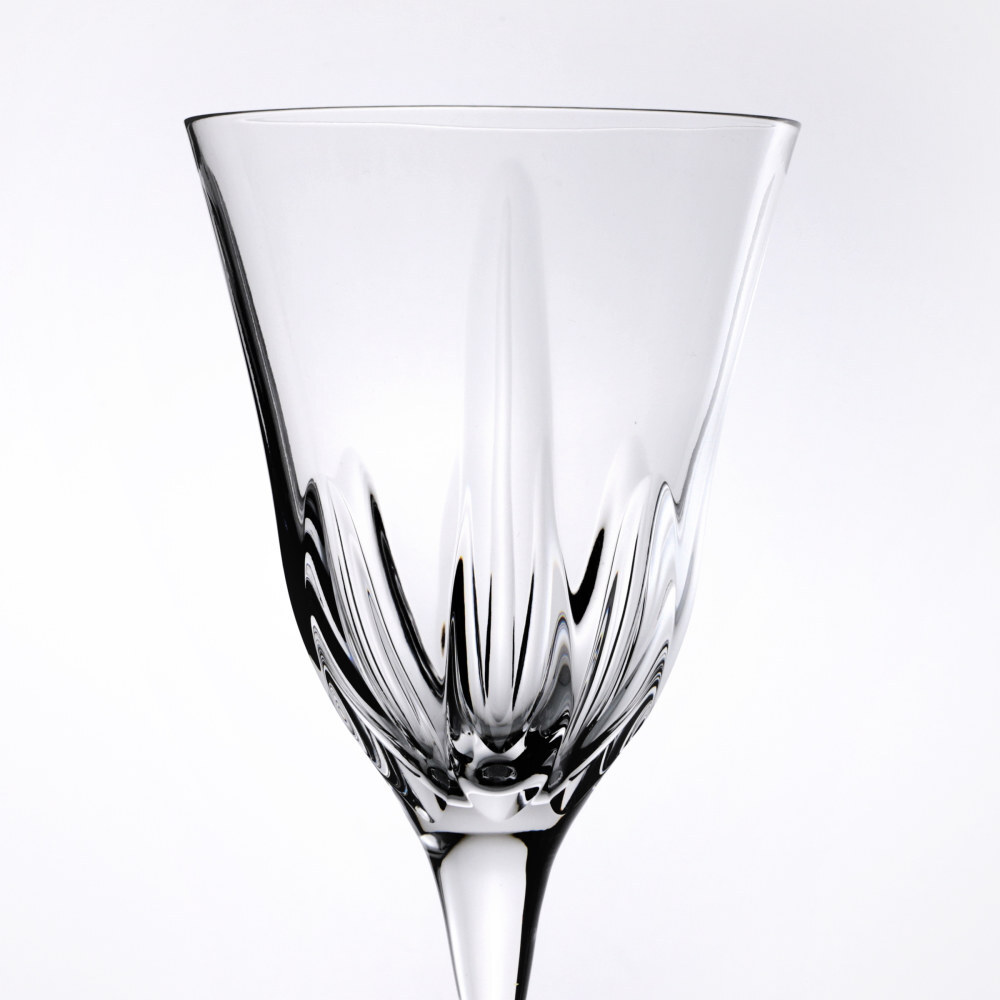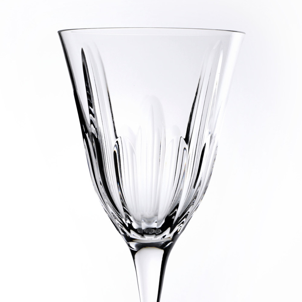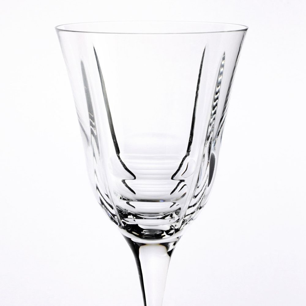 Set di sei calici per acqua in vetro.