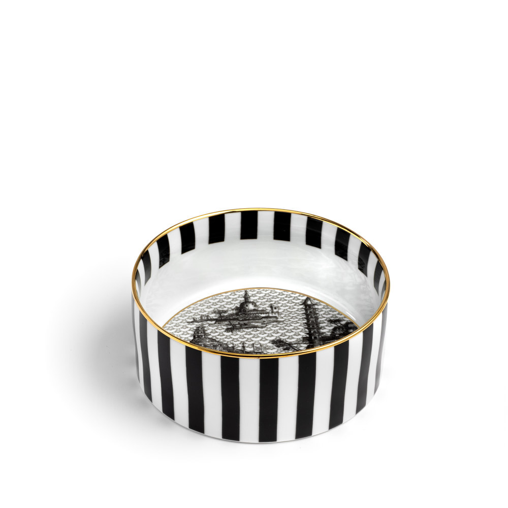 La collezione di piatti e accessori in porcellana Souvenirs de Voyage si presenta all’interno di un’elegante scatola regalo imbottita e rifinita con bordura, logo di Simone Guidarelli e dettagli stampati in oro.