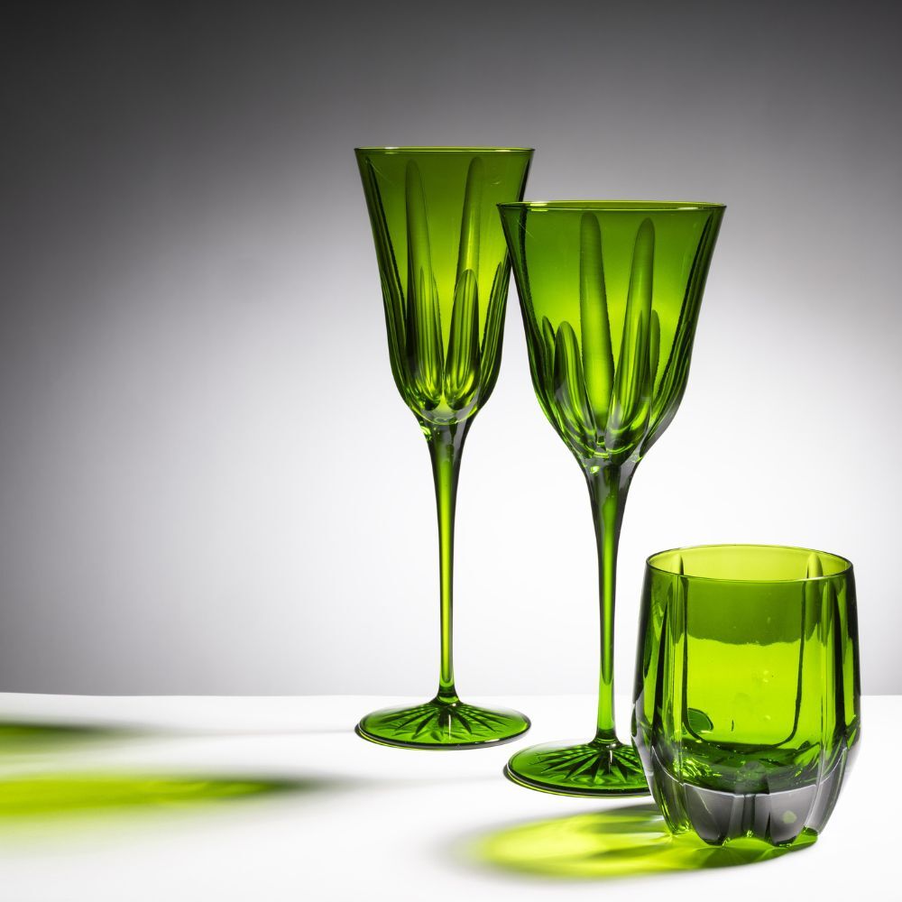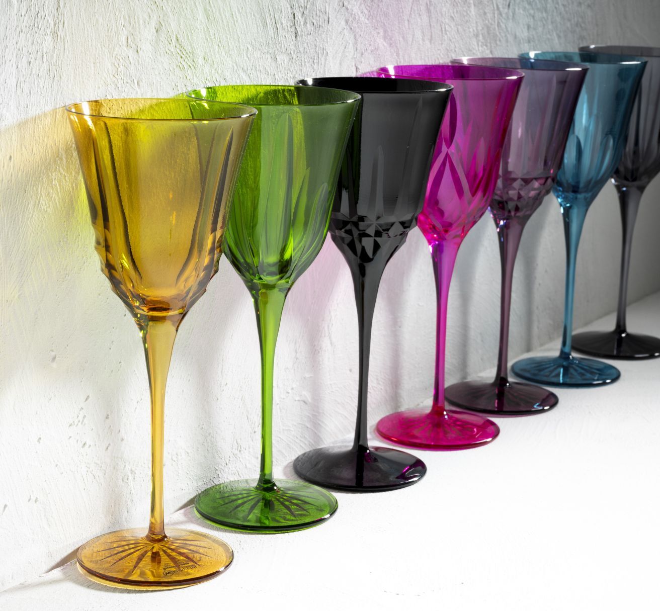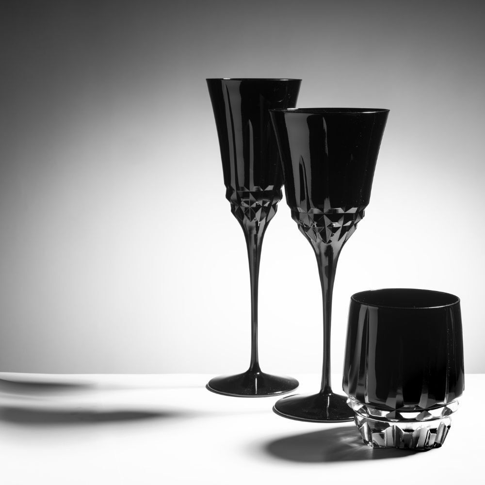La linea di bicchieri Made in Italy Gem, molata e rifinita completamente a mano, si amplia con la serie di calici e flûte nello stesso assortimento di colori.