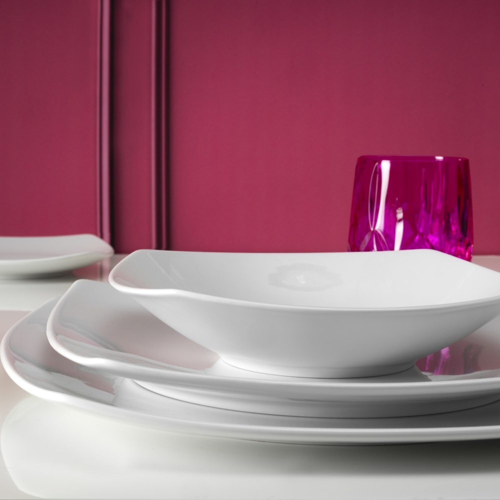 Per una tavola moderna, ma sempre dal fascino classico e intramontabile, il servizio di piatti in porcellana bianca Square-O White è la scelta perfetta. Le forme squadrate dei piatti incontrano le forme più dolci e arrotondate delle tazze, della zuccheriera e dell'insalatiera per un effetto originale e sorprendente.